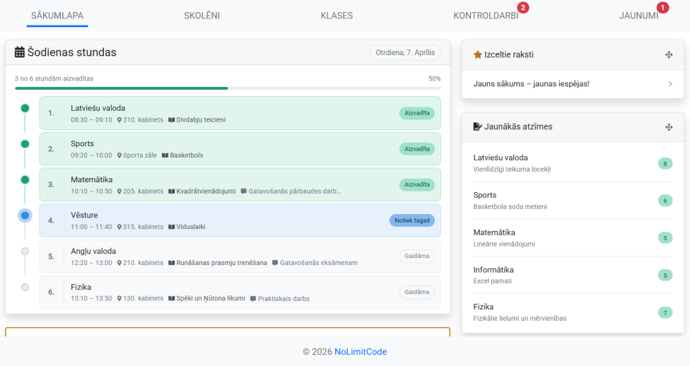 Tagad sistēmā iespējams reģistrēt stundas, atzīmēt skolēnu apmeklējumu un izmantot “Šodienas ...